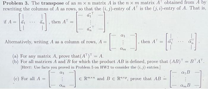 Solved Problem 3. The transpose of an m×n matrix A is the | Chegg.com