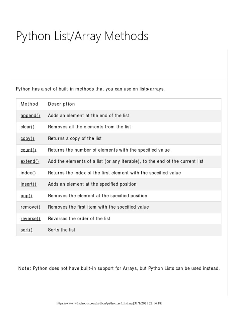 Python List - Array Methods | PDF
