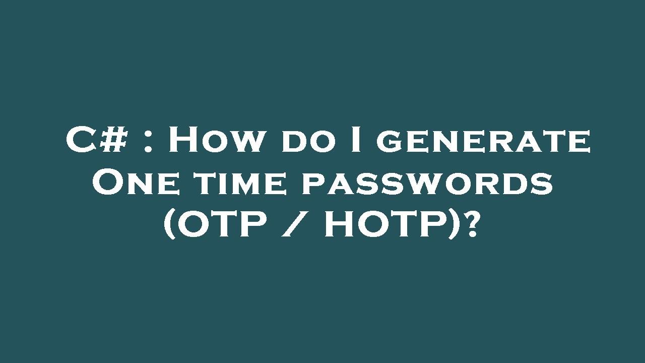 C# : How do I generate One time passwords (OTP / HOTP)? - YouTube