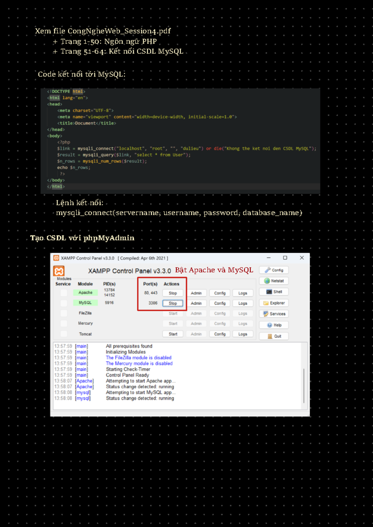 Hướng Dẫn Kết Nối PHP với MySQL - Công Nghệ Web Session 4 - Studocu