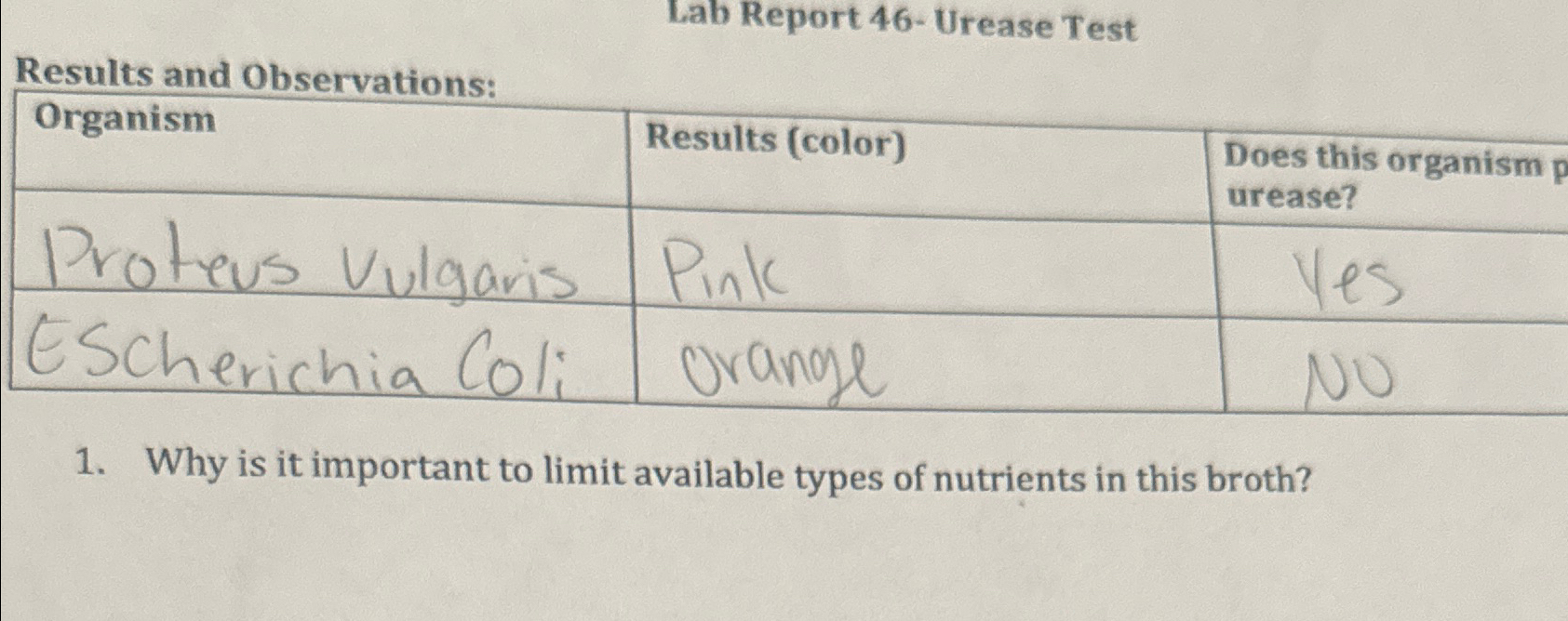 Based on this image's title: “Solved Lab Report 46-Urease TestResults and | Chegg.com”