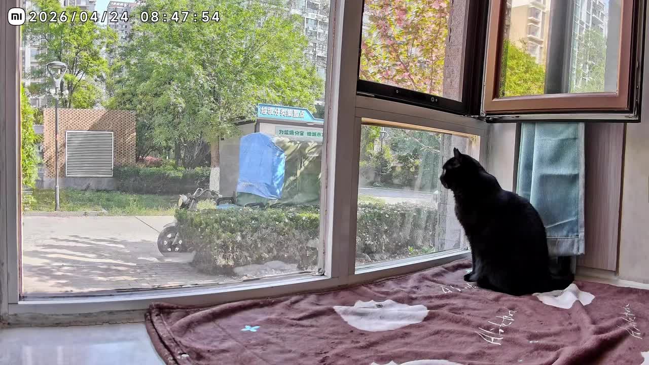Cat watches rolling ball from window in Shandong, China