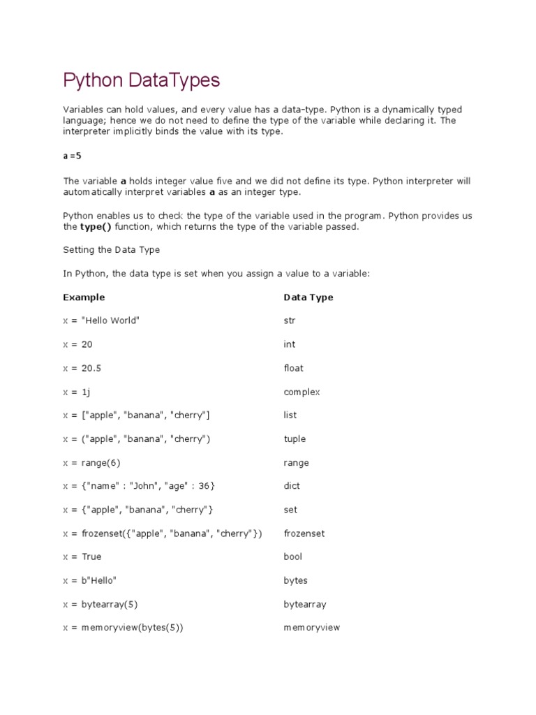 What Are Data Types In Python Explain Their Types - Free Math Worksheet ...