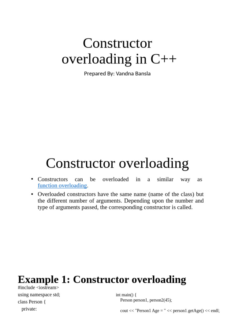 Constructor Overloading in C++ | PDF | Constructor (Object Oriented ...