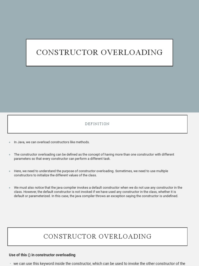 Lecture 7 Constructor Overloading and Java | PDF | Constructor (Object ...