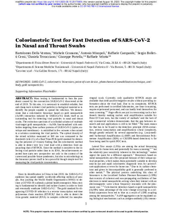 (PDF) Colorimetric Test for Fast Detection of SARS-CoV-2 in Nasal and ...
