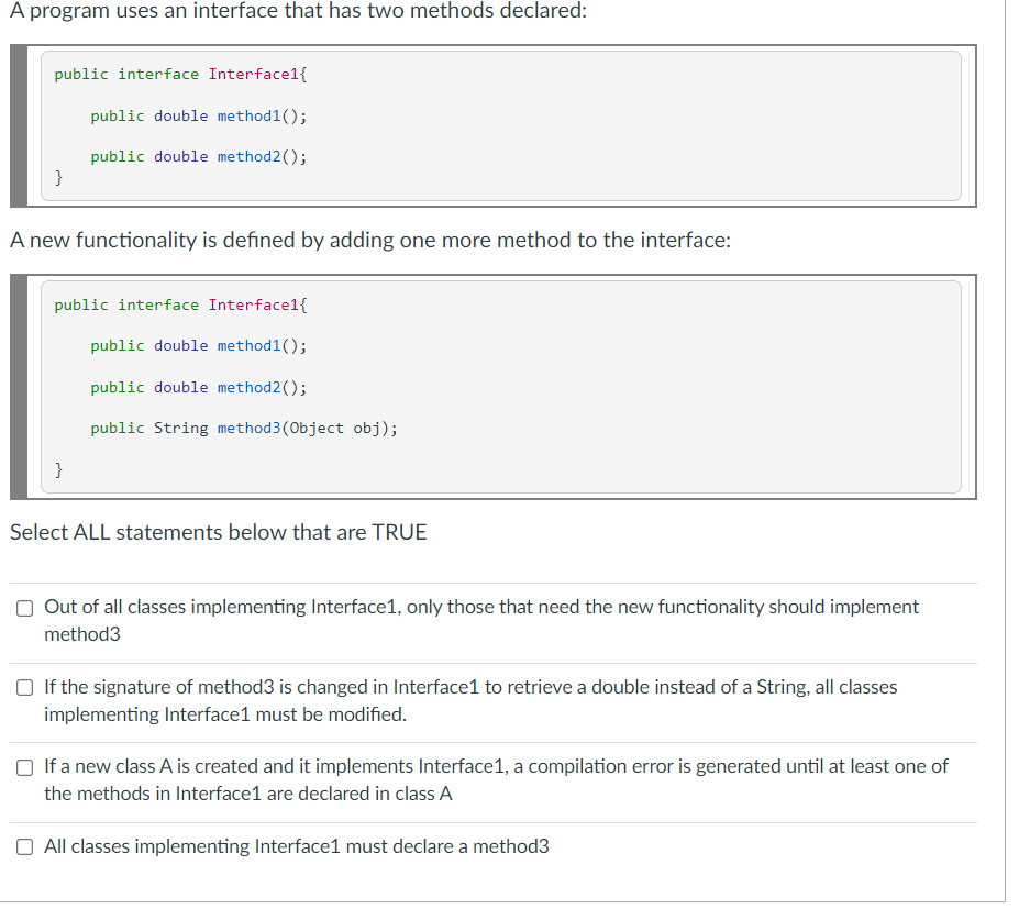 Solved Q2. This question relates to interfaces in Java. Do | Chegg.com