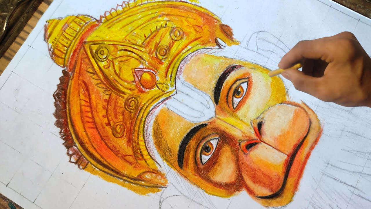 Hanuman Ji Drawing, How To Draw Lord Hanuman, Oil Pastels - YouTube