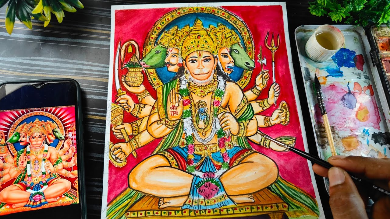 panchmukhi hanuman ji oil pestal drawing | hanuman jayanti special ...