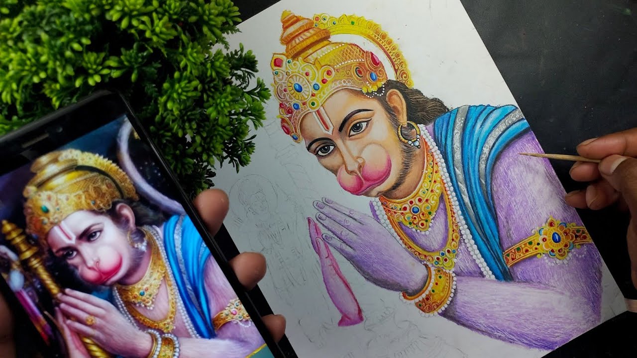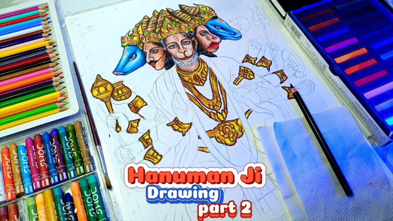 [Part-2] Lord Hanuman Drawing | Panchmukhi Hanuman| Pencil colours| Oil ...