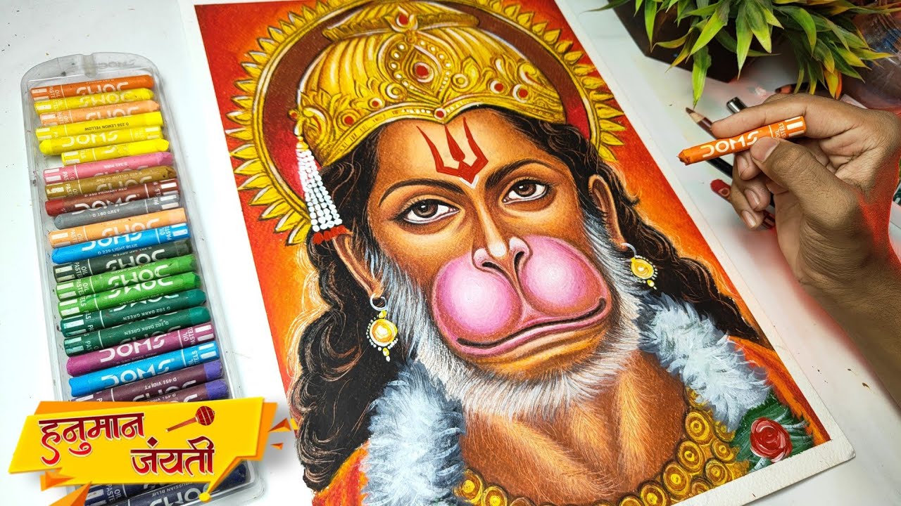 Lord Hanuman Ji Drawing with Oil Pastel, Hanuman Jayanti Drawing ...