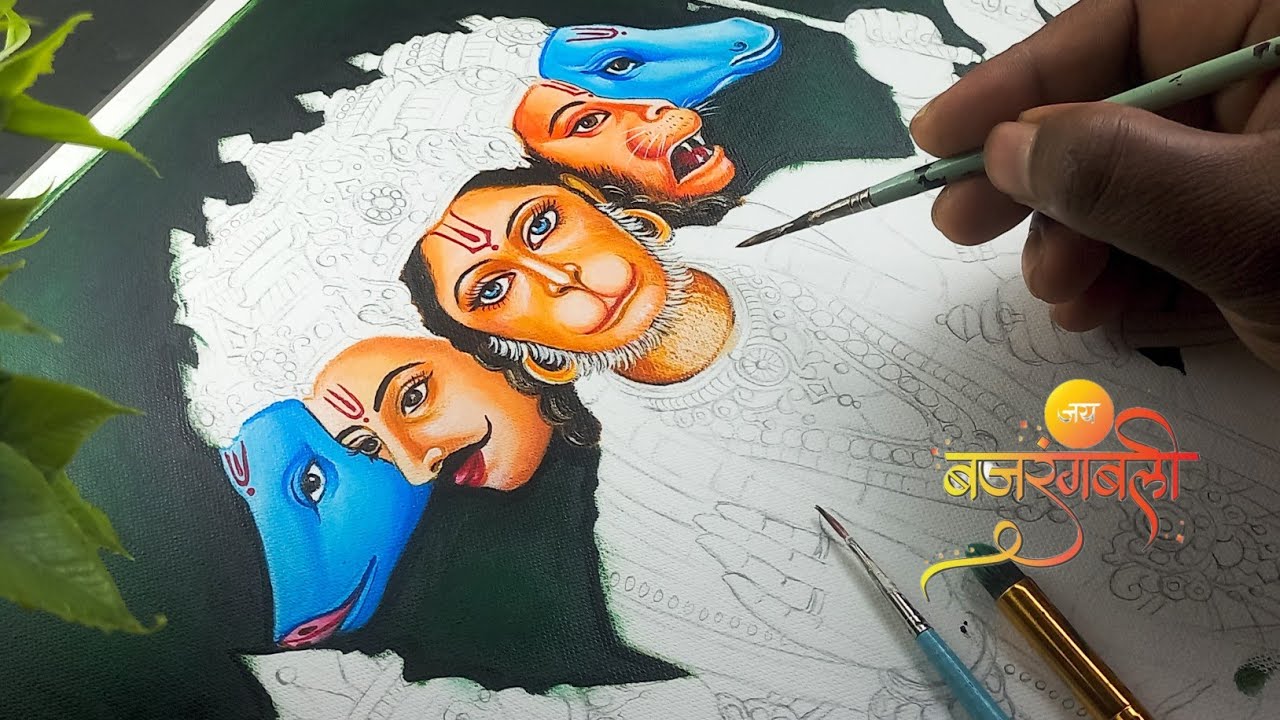Hanuman Ji Drawing, Panchamukhi Hanuman Drawing, Acrylic Colour ...
