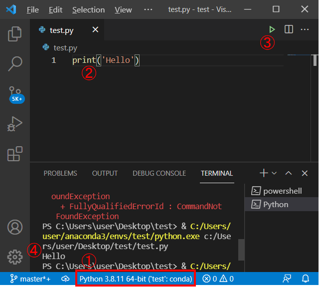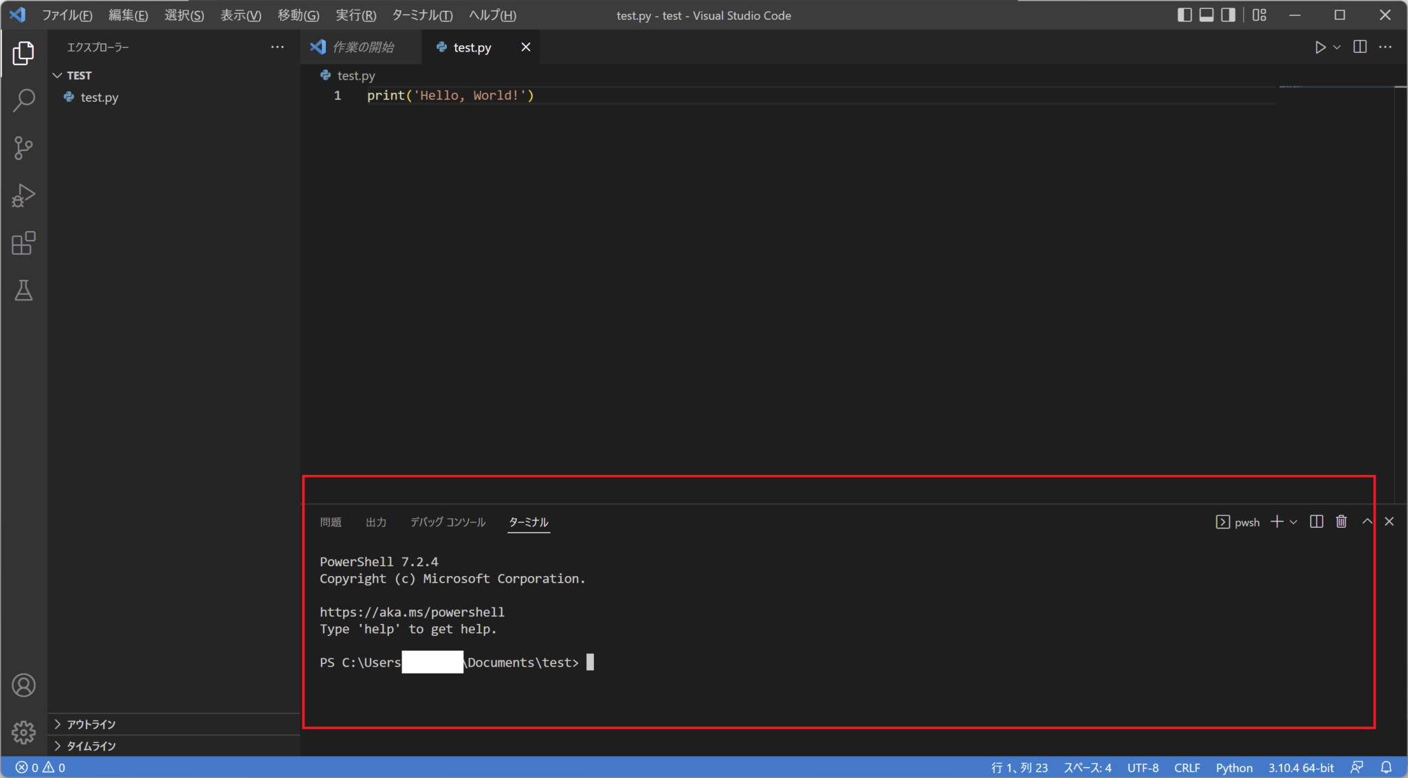 ターミナルで実行: Visual Studio Code でPython入門 【Windows編】 - python.jp