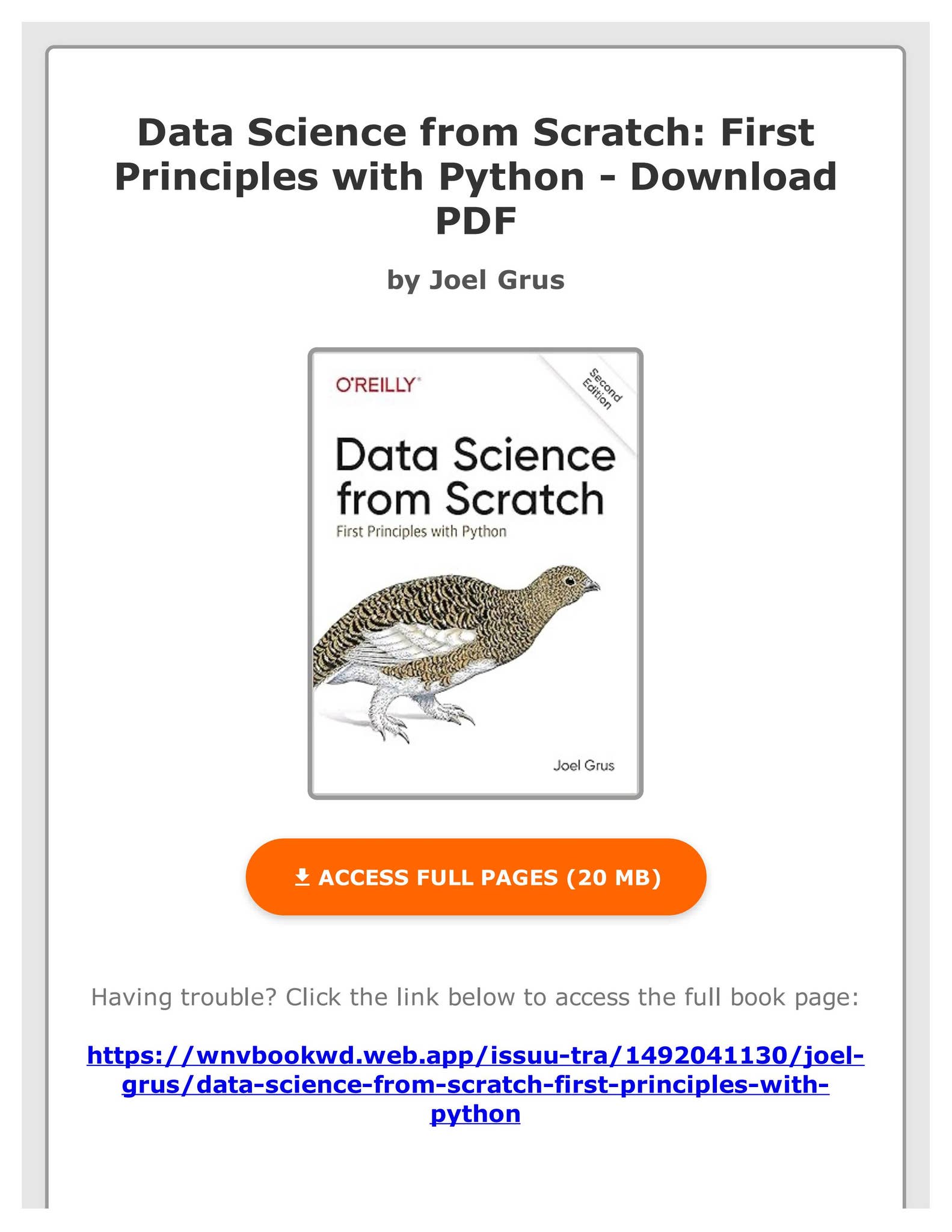 Based on this image's title: “Data Science from Scratch: First Principles with Python: Grus, Joel ...