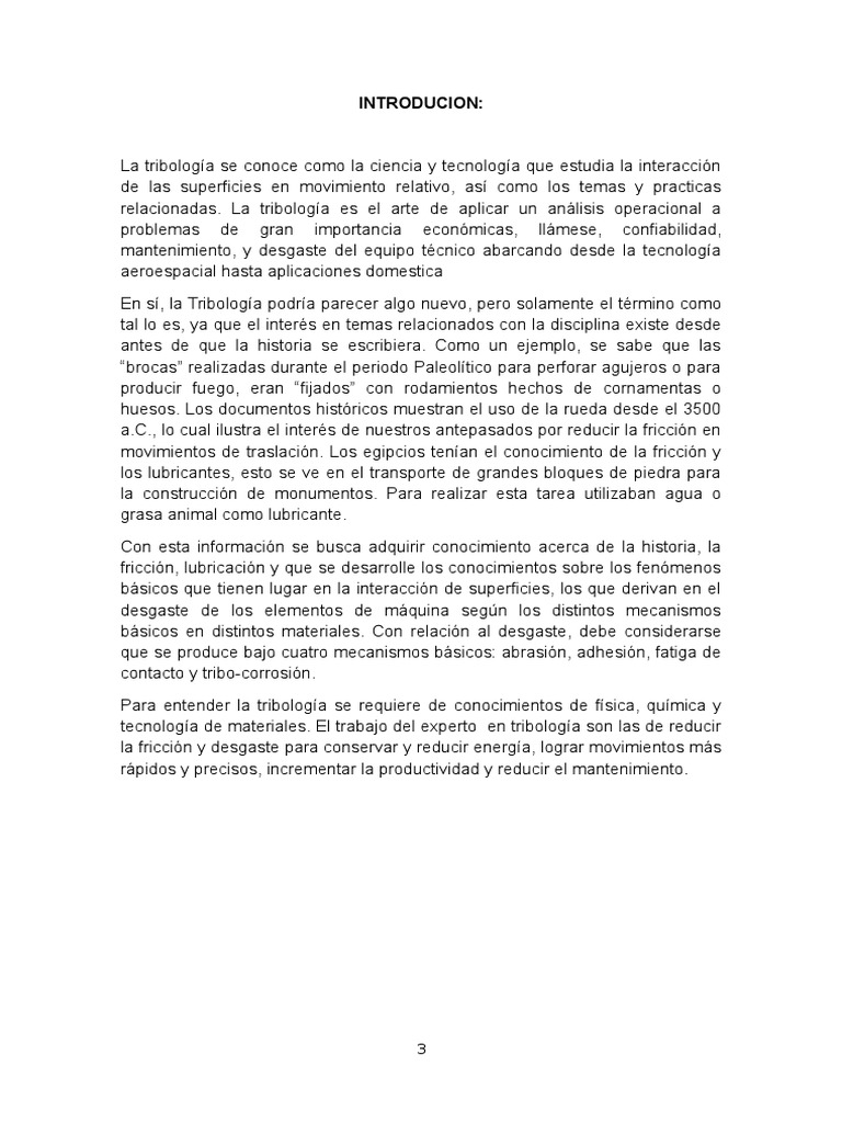 INTRODUCCIÓN TRIBOLOGÍA | PDF | Fricción | Lubricante