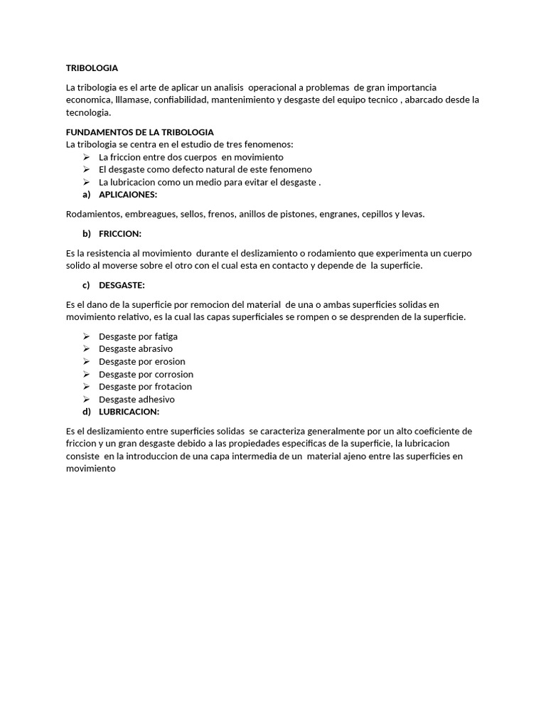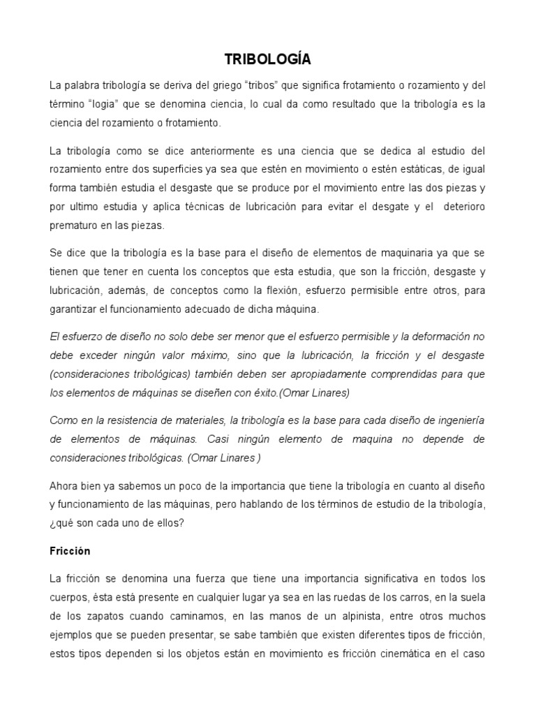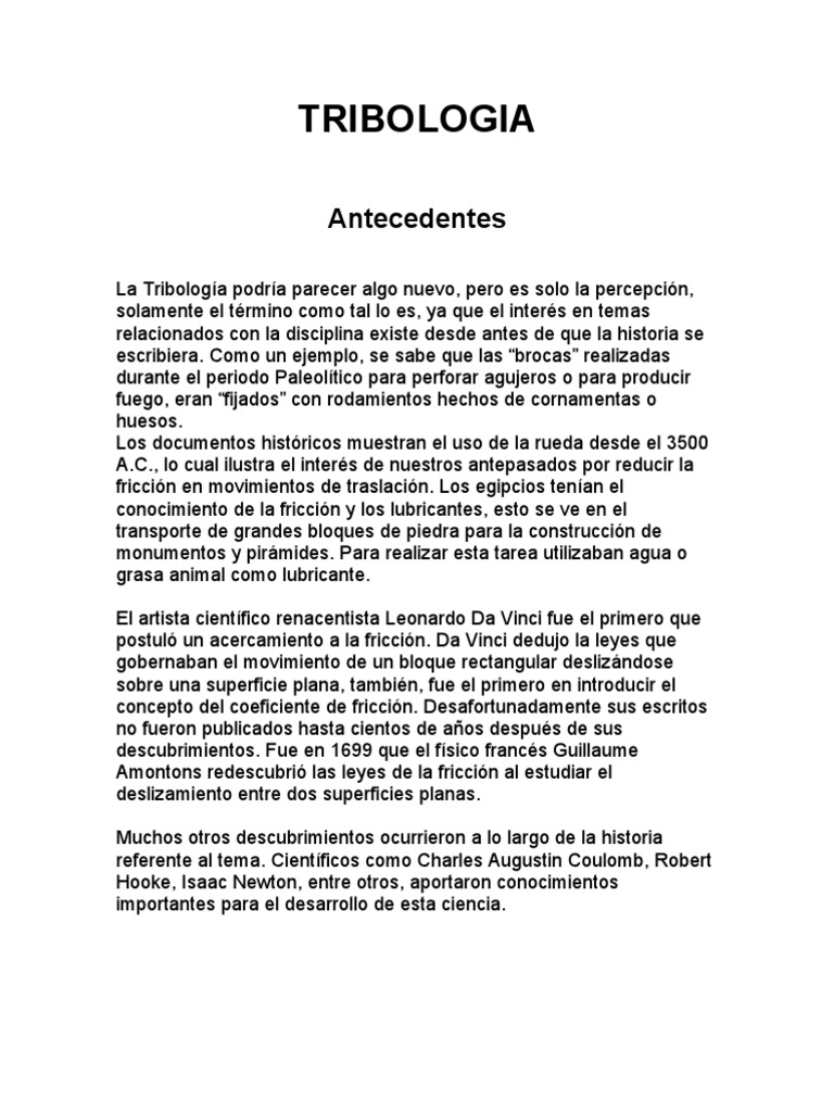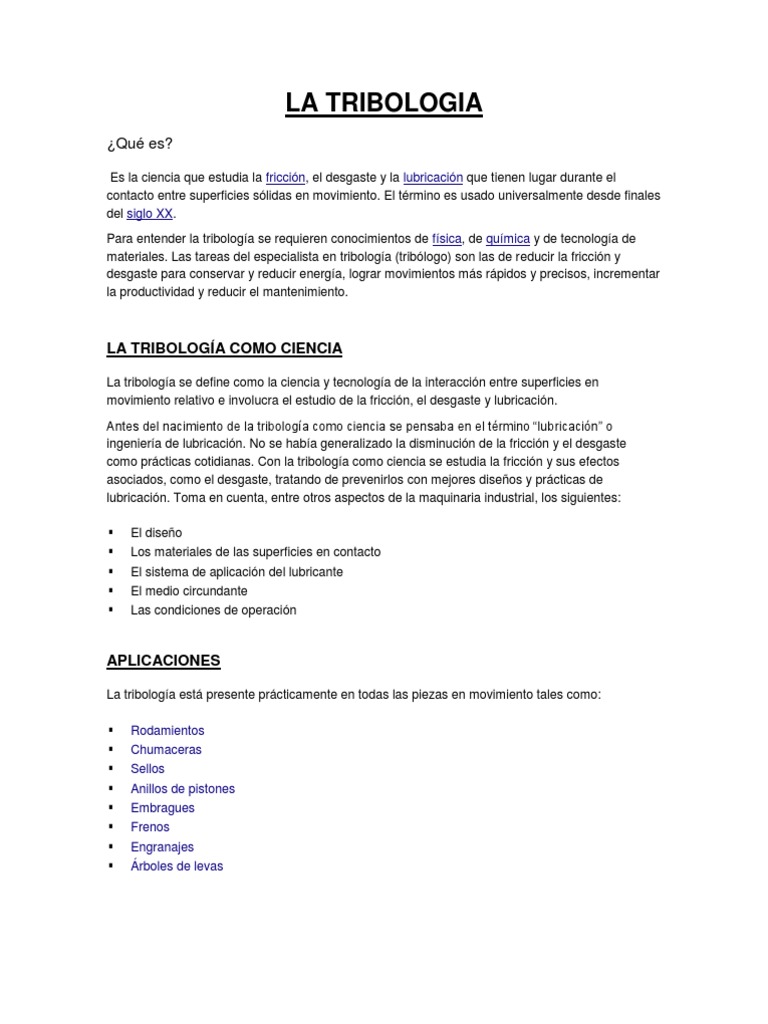 La Tribologia | PDF | Ingeniería mecánica | Física Aplicada e ...