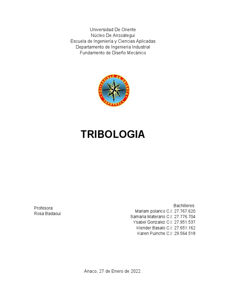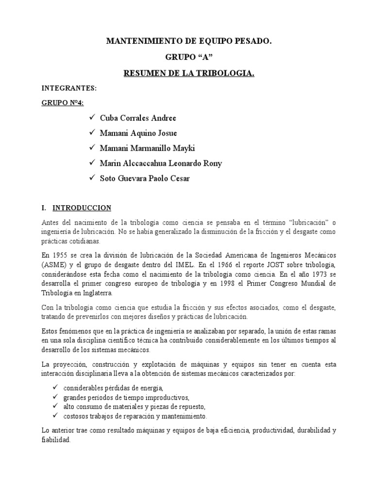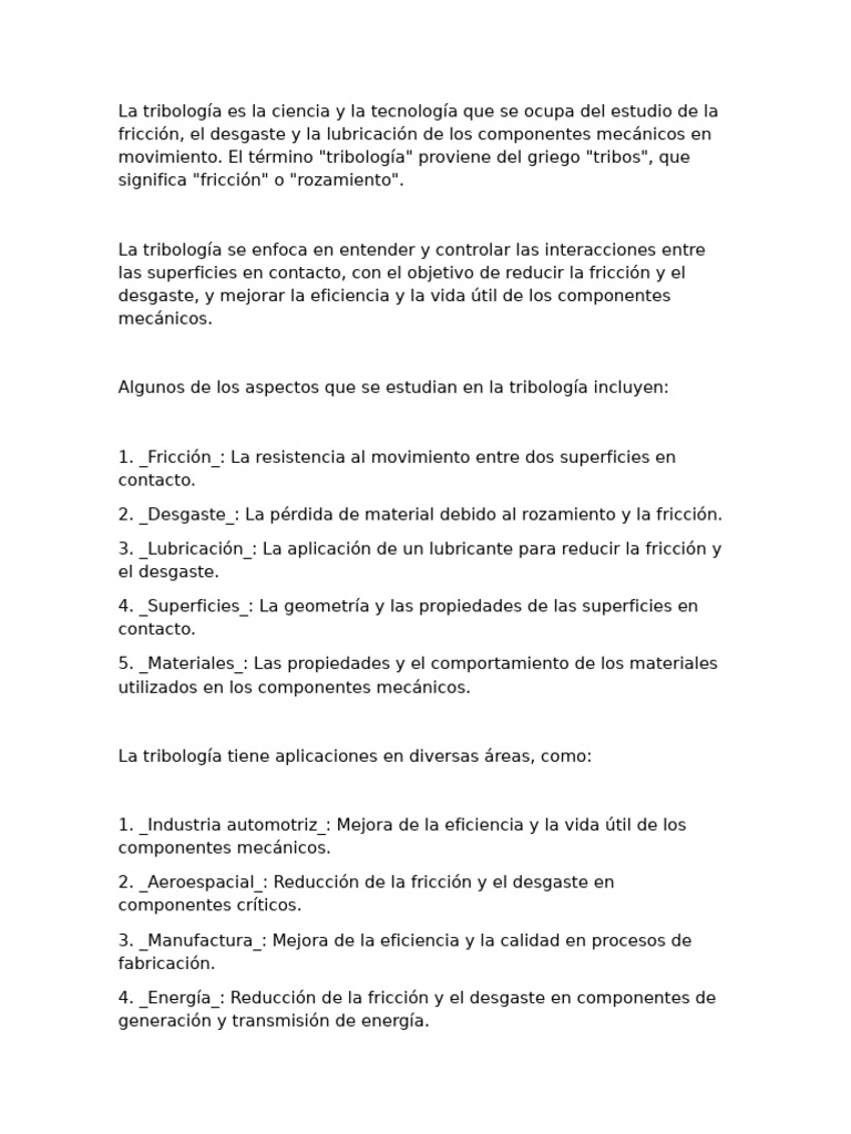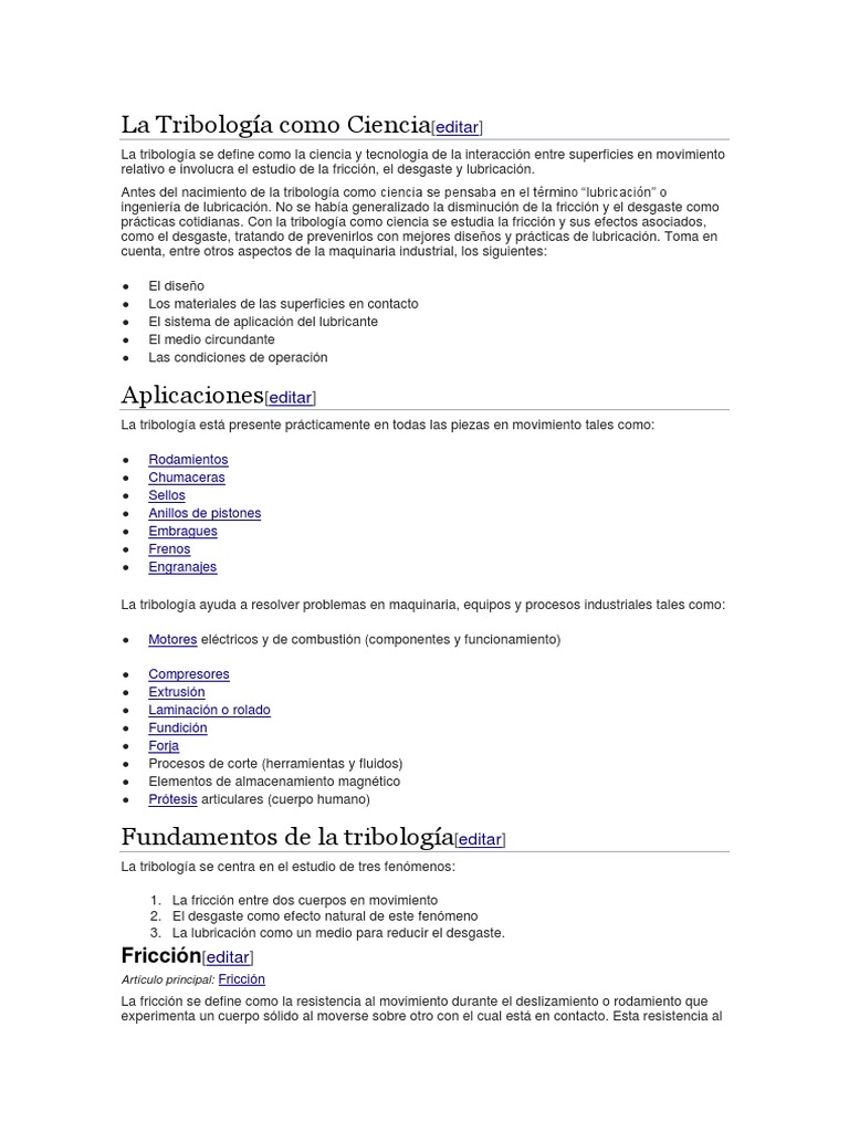 La Tribologia | PDF | Ingeniería mecánica | Física Aplicada e ...