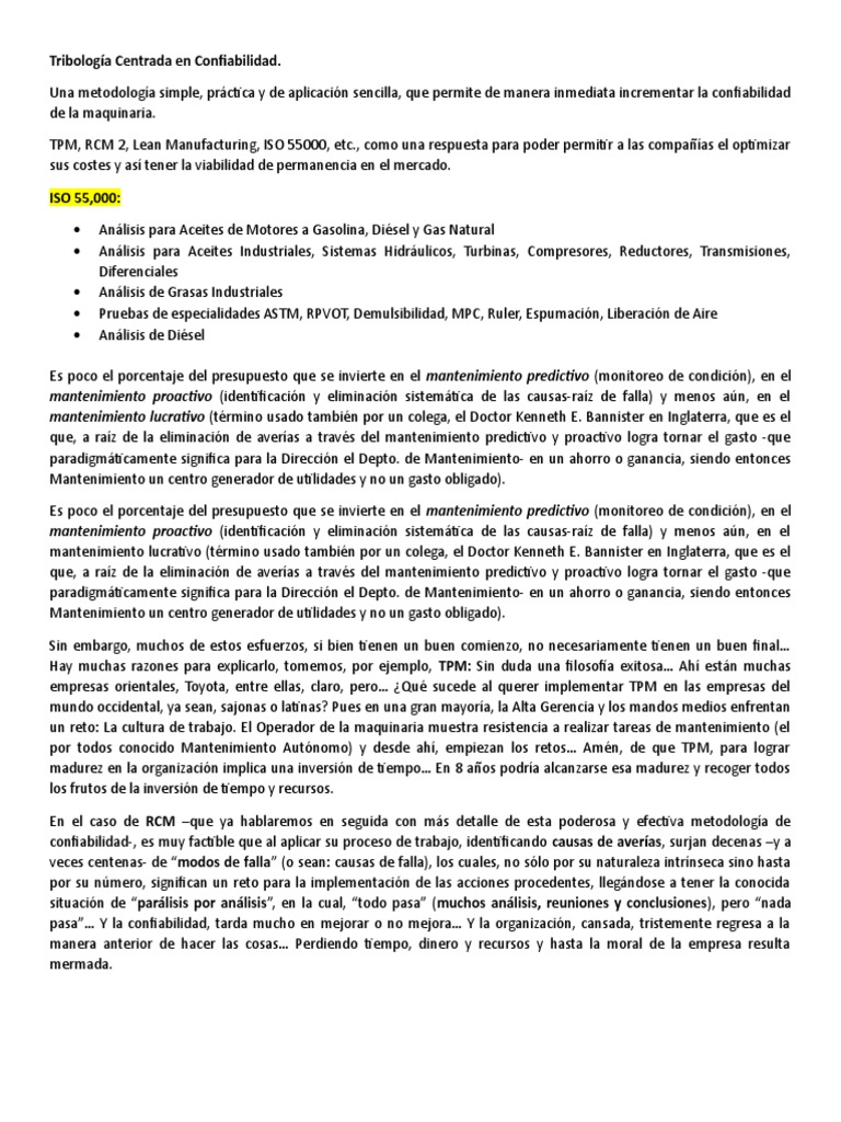 Tribología Centrada en Confiabilidad | PDF | Ingeniería mecánica ...