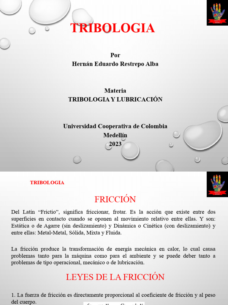 Presentación Sobre La Tribología | PDF | Fricción | Lubricante
