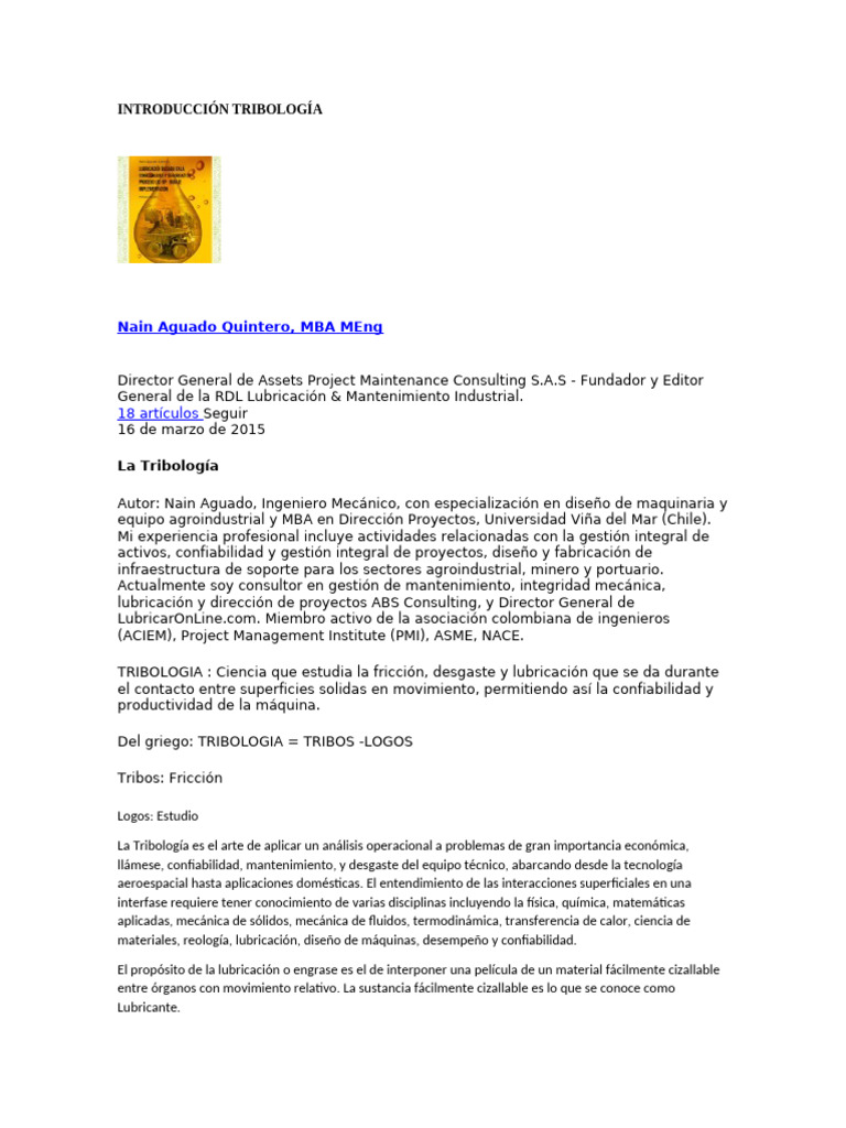 Introducción a la Tribología | PDF | Ingeniería mecánica | Física ...