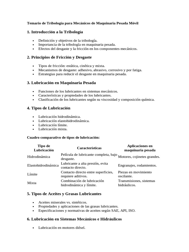 Temario de Tribología para Mecánicos de Maquinaria Pesada Móvil 01 ...