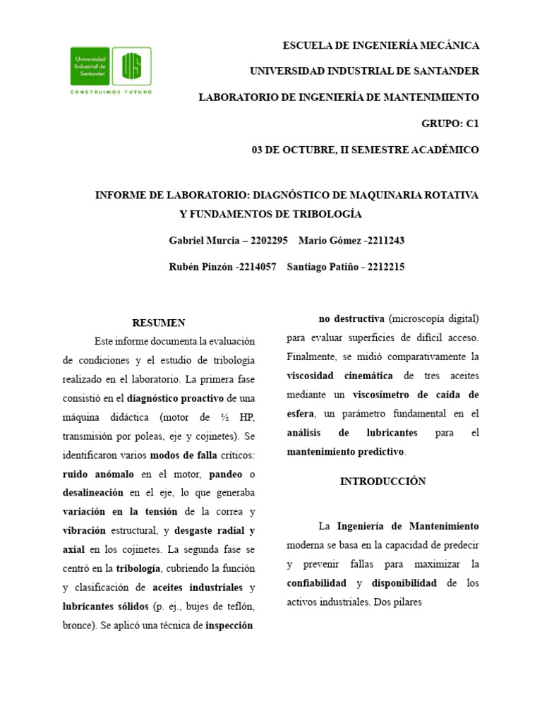 Laboratorio de Tribologia 1 | PDF | Rodamiento (Mecánico) | Ciencia de ...