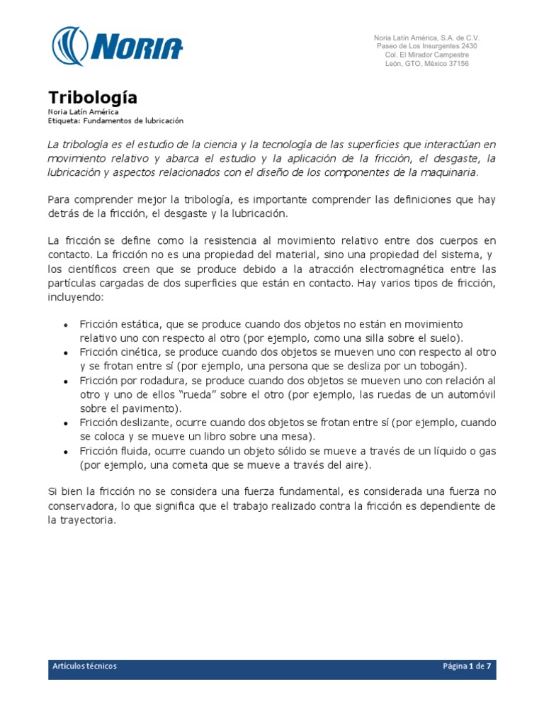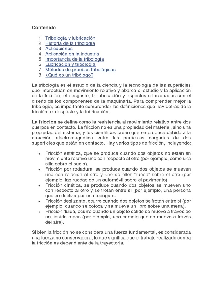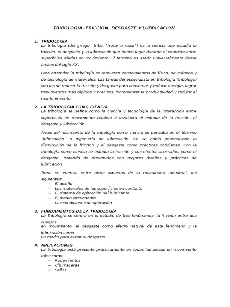 Introducción a la Tribología y su Aplicación | PDF | Fricción ...