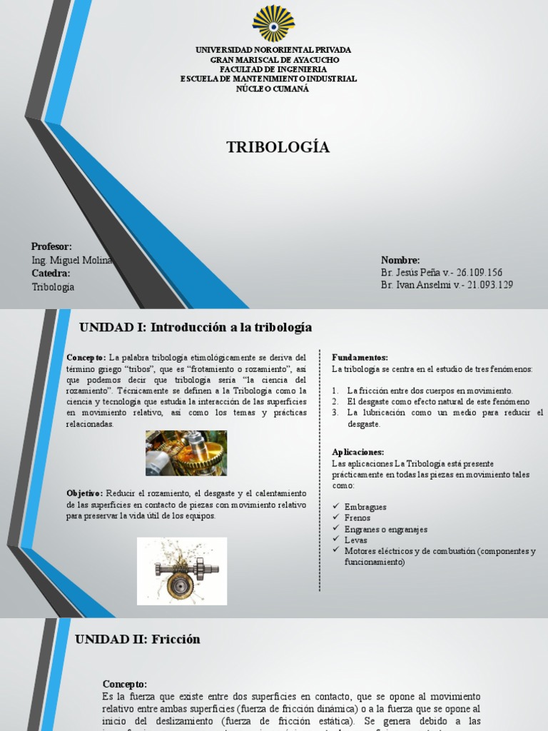 Tribología Presentación | PDF | Ciencia de los Materiales | Ingeniería ...