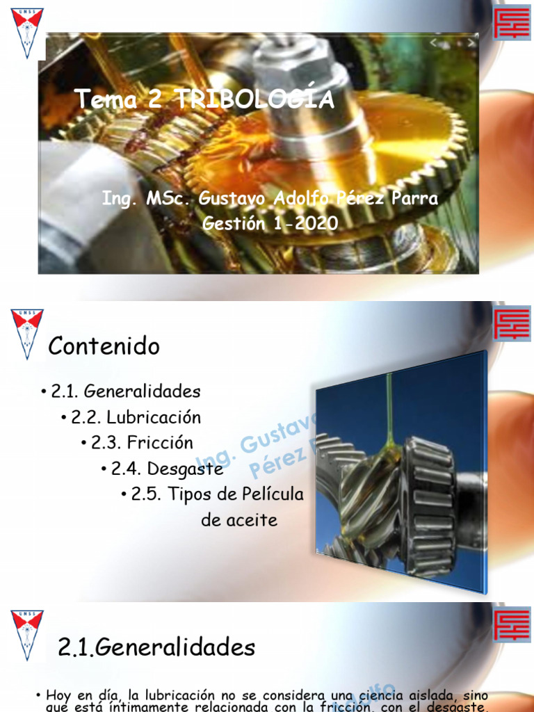 Tribología Tema I | PDF | Lubricante | Física Aplicada e Interdisciplinaria