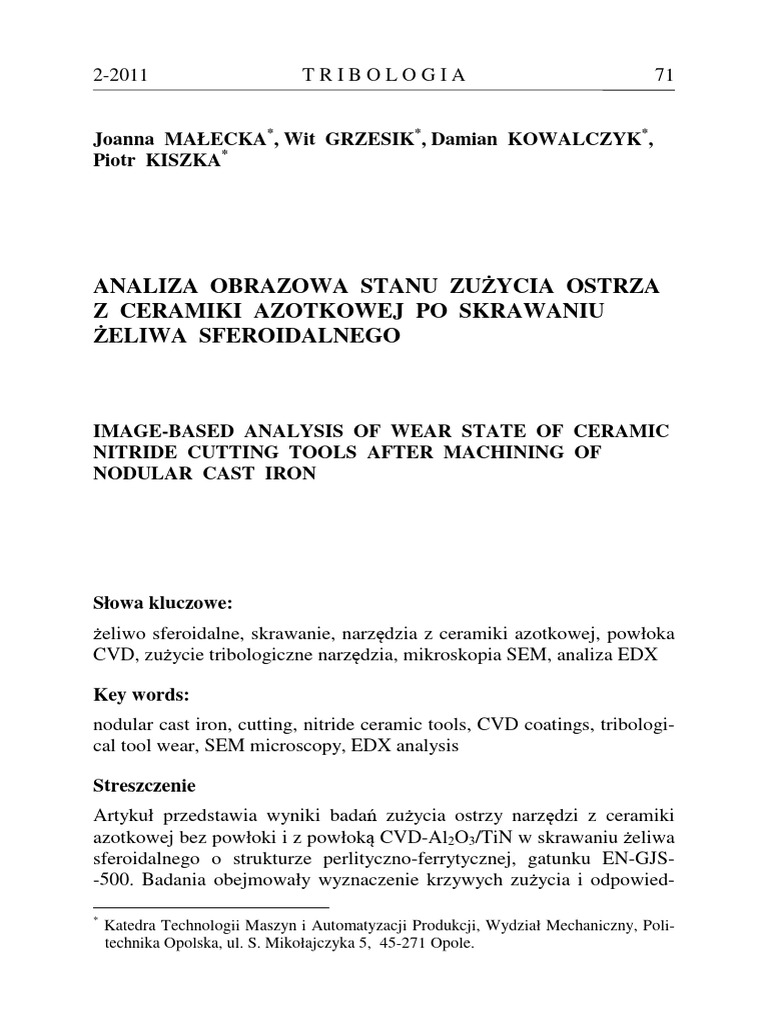 Tribologia 2 2011 Malecka | PDF