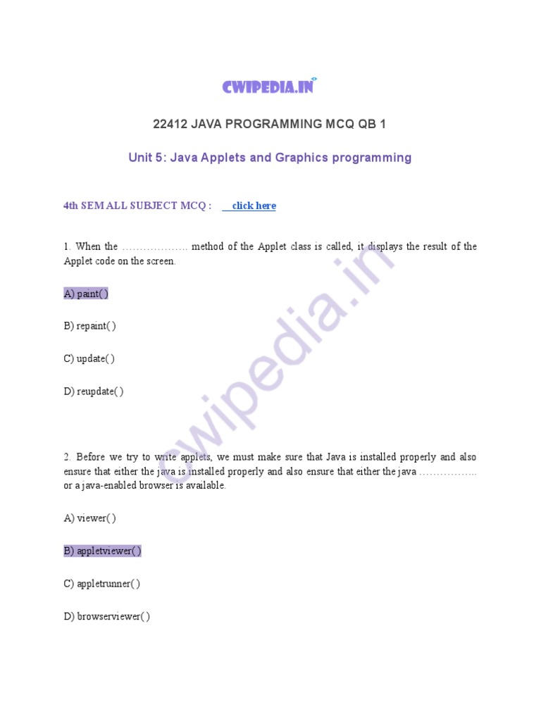 Unit V Java Applets and Graphics Programming Complete | PDF | Html ...