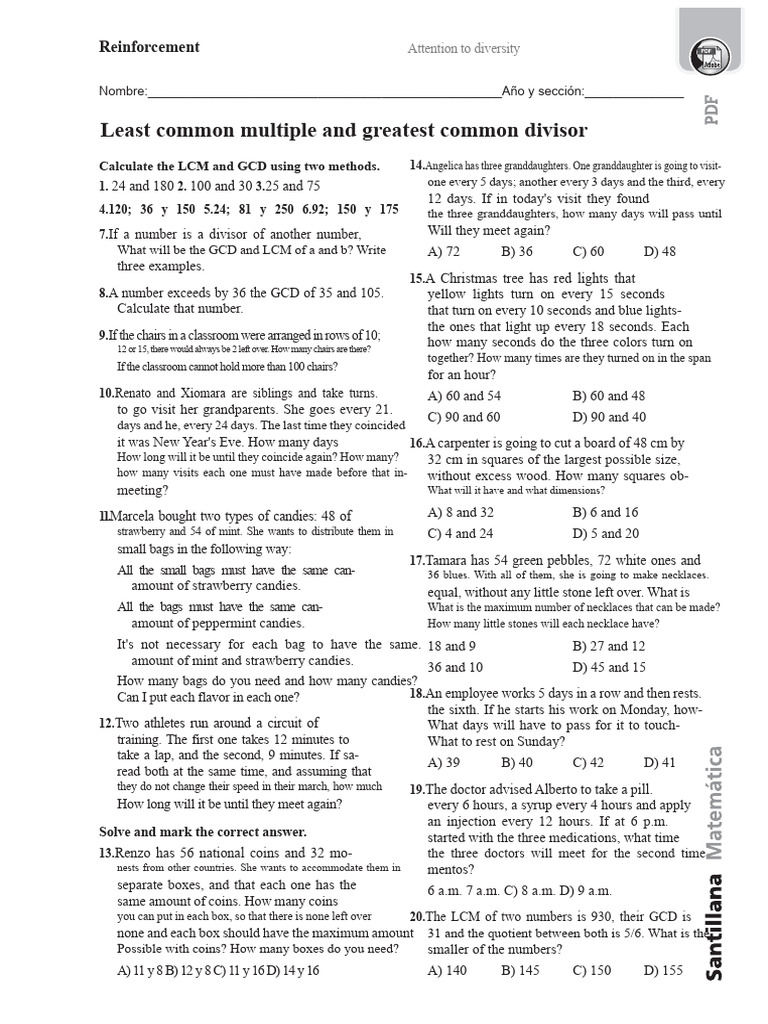 Least common multiple and greatest common divisor | PDF | Elementary ...