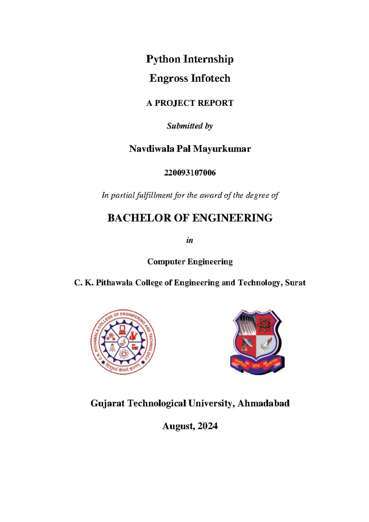 Python Internship Report at Engross Infotech - CKPCET 220093107006 ...