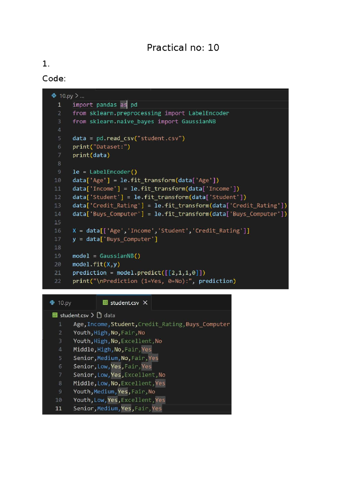 Practical 10: Using LabelEncoder & GaussianNB in Python - Studocu