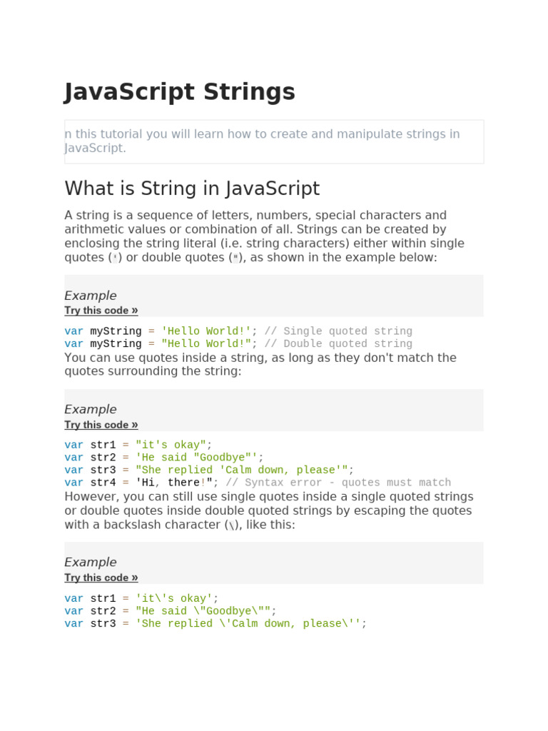 JavaScript Strings: Basics and Usage | PDF | Java Script | String ...