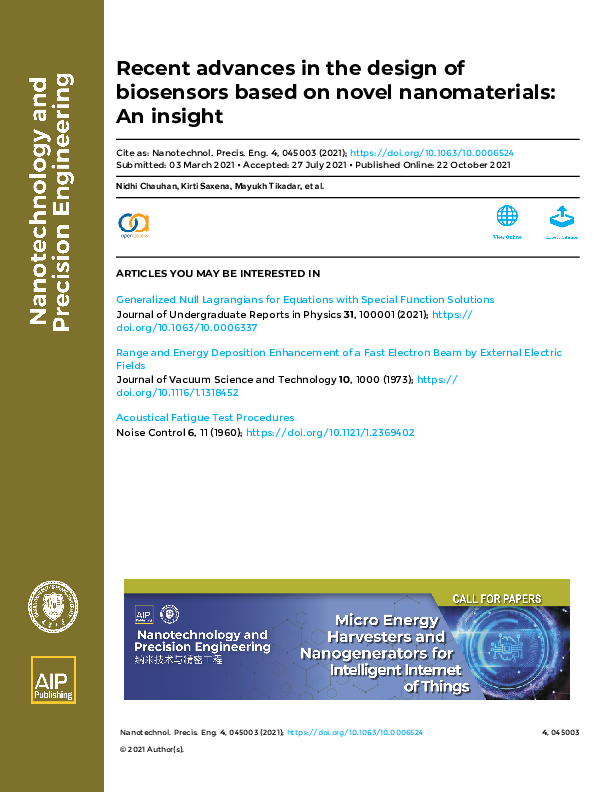 (PDF) Recent progress in Nanomaterial based biosensors for the ...