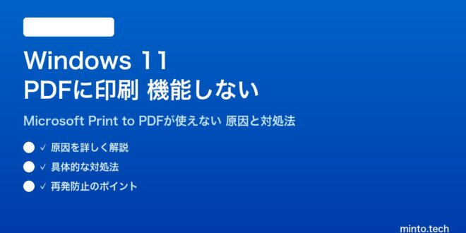 Based on this image's title: “【2026年最新版】Windows 11の「PDFに印刷」(Microsoft Print to PDF)が機能しない・保存できない原因と対処 ...”