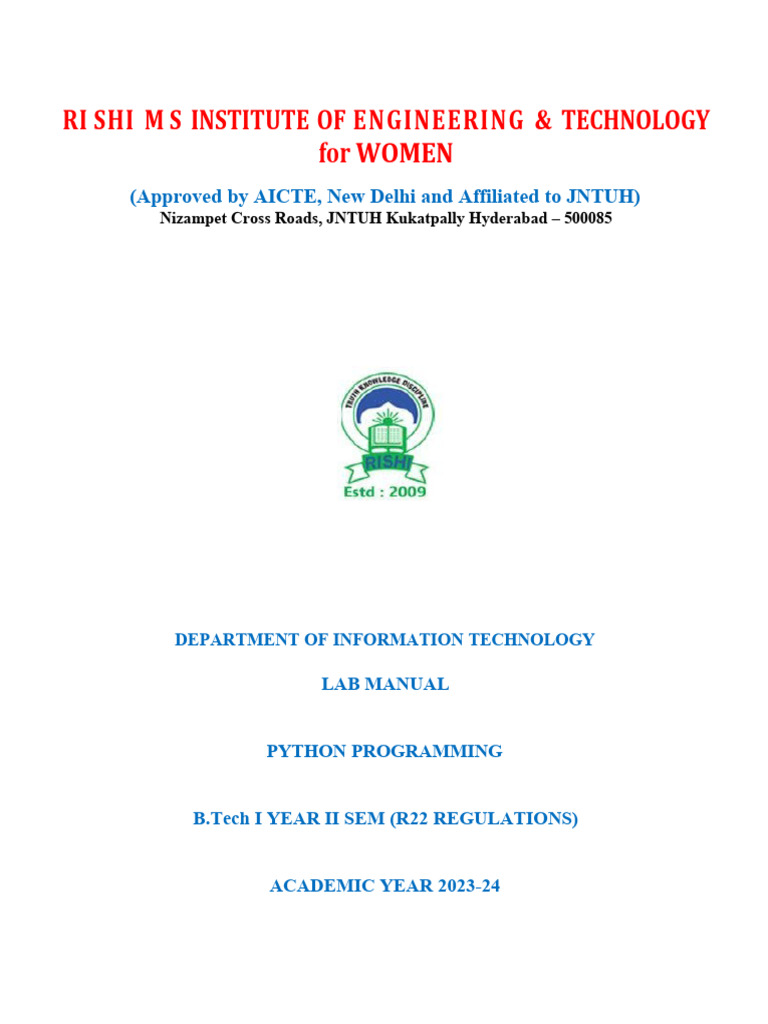 R22 - IT - Python Programming Lab Manual | Download Free PDF ...
