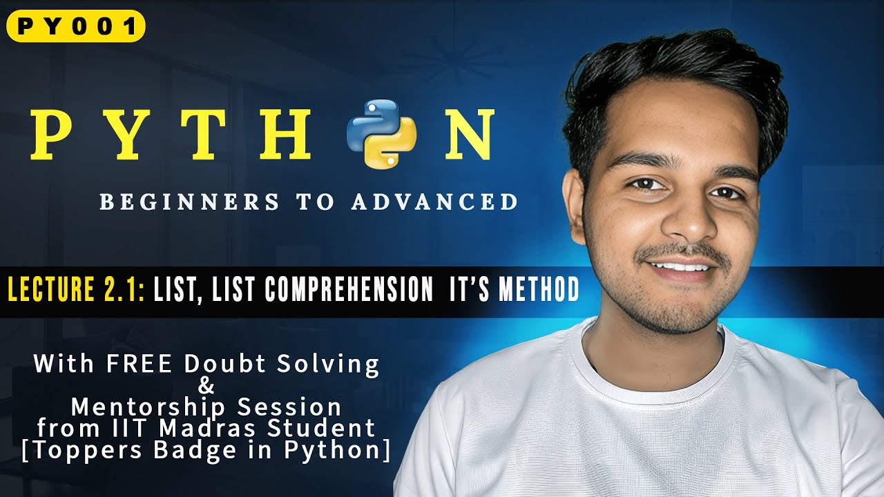 Lecture 2.1 || List , List Comprehension and it's method || PY001 - YouTube