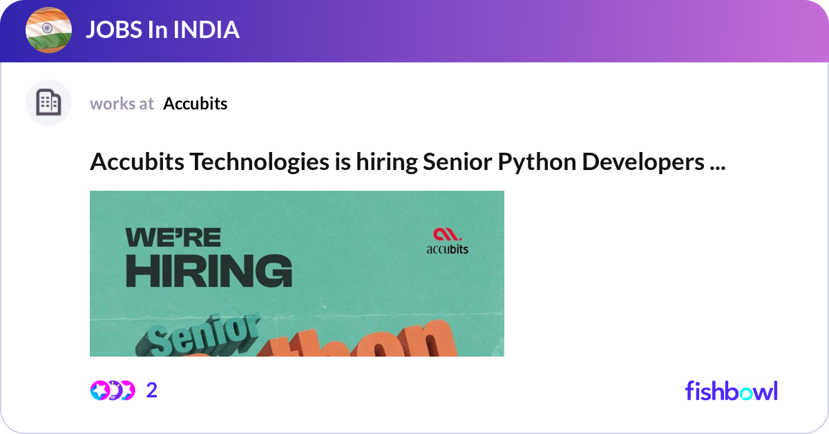 Accubits Technologies is hiring Senior Python Deve... | Fishbowl
