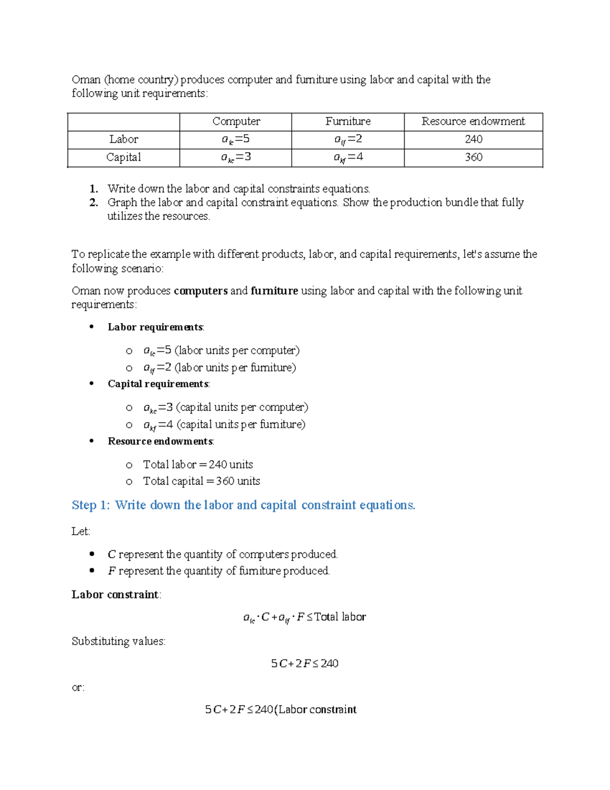 Chp3-HO Model Ex4: Labor & Capital Constraints in Oman Production - Studocu