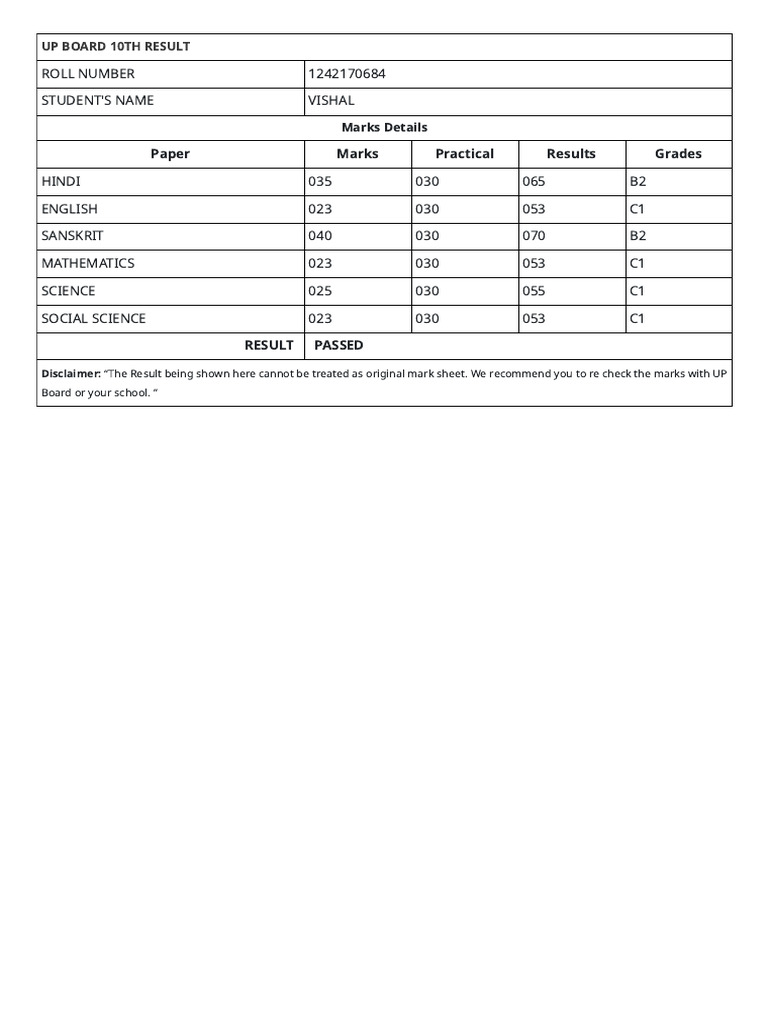 UP Board 10th Result 2024 OUT, UPMSP Board High School Result Marksheet ...