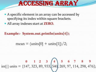 Based on this image's title: “Arrays and with its types and elements in java | PPT”