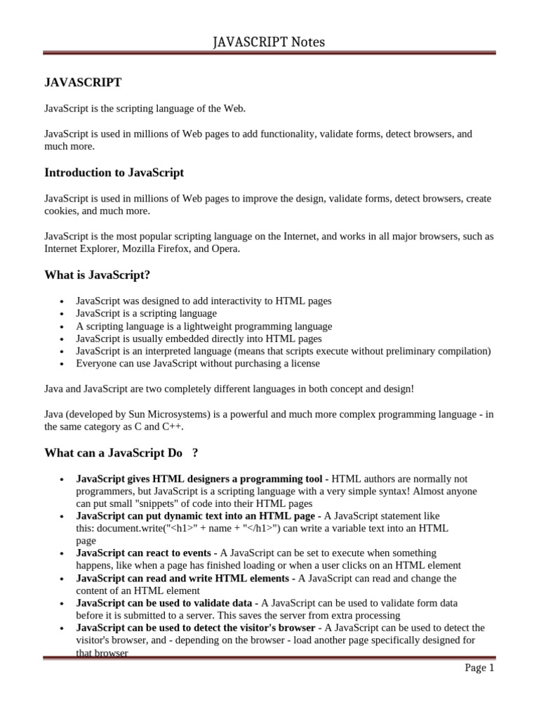 JavaScript Notes | PDF | Java Script | Programming Language