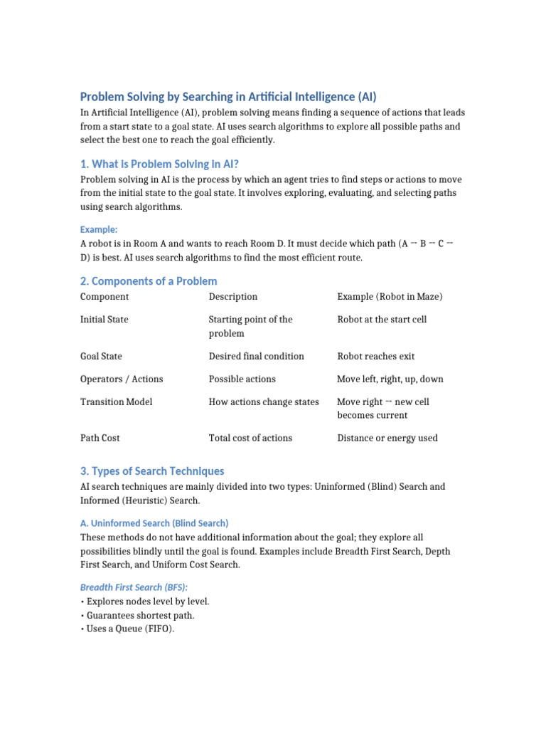 (PDF) ARTIFICIAL INTELLIGENCE PROBLEM SOLVING AND SEARCH