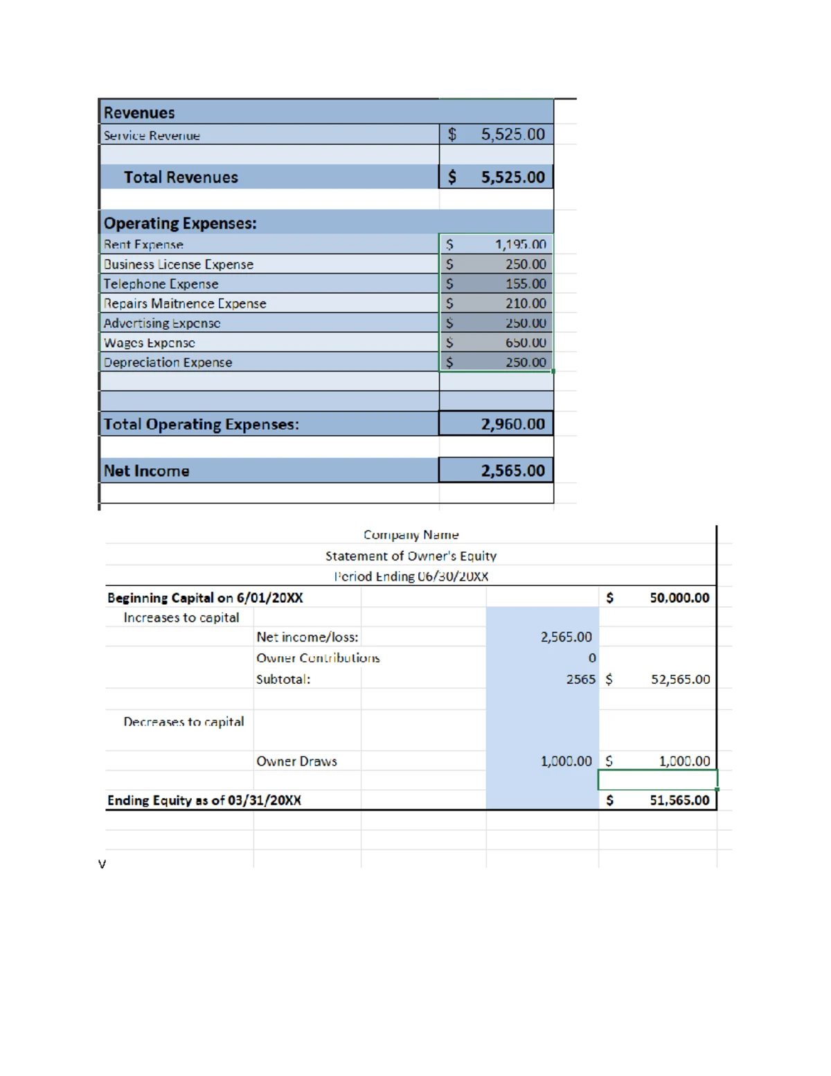 Accounting 101 - Comprehensive Problem Worksheet (Income Statement ...