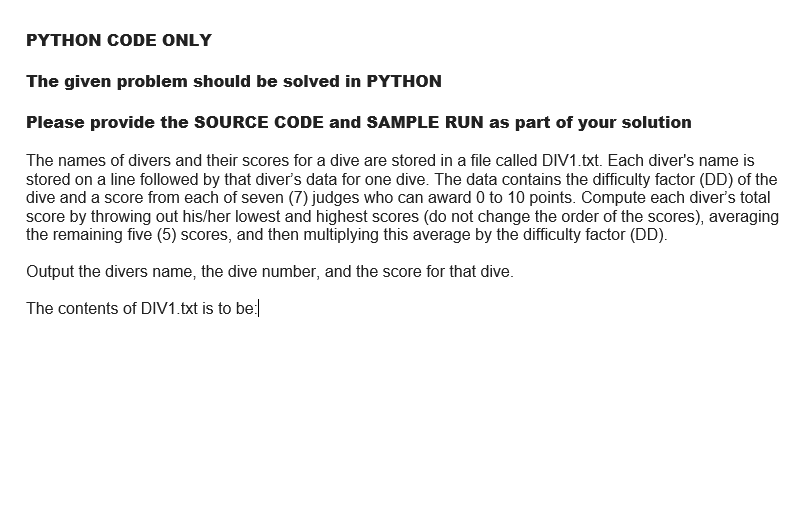 Solved Python language needed to solve the problem below: | Chegg.com