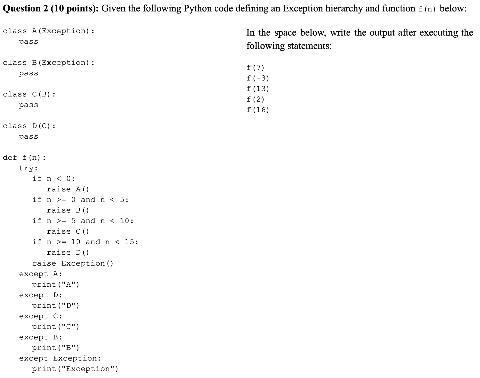 Question 2 (10 points): Given the following Python | Chegg.com