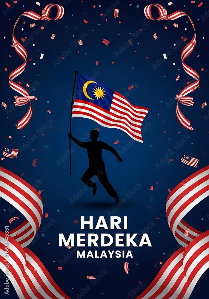 Hari Merdeka Malaysia: Silhouette of a runner with the Malaysian flag の ...