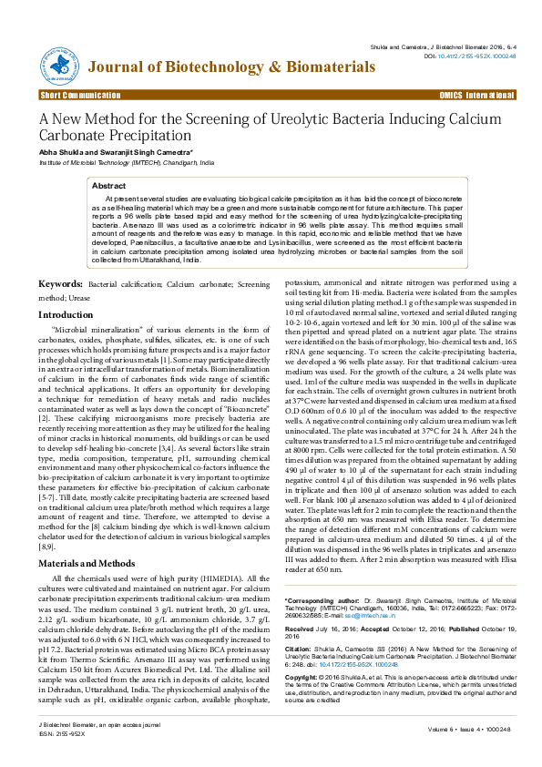 (PDF) A New Method for the Screening of Ureolytic Bacteria Inducing ...